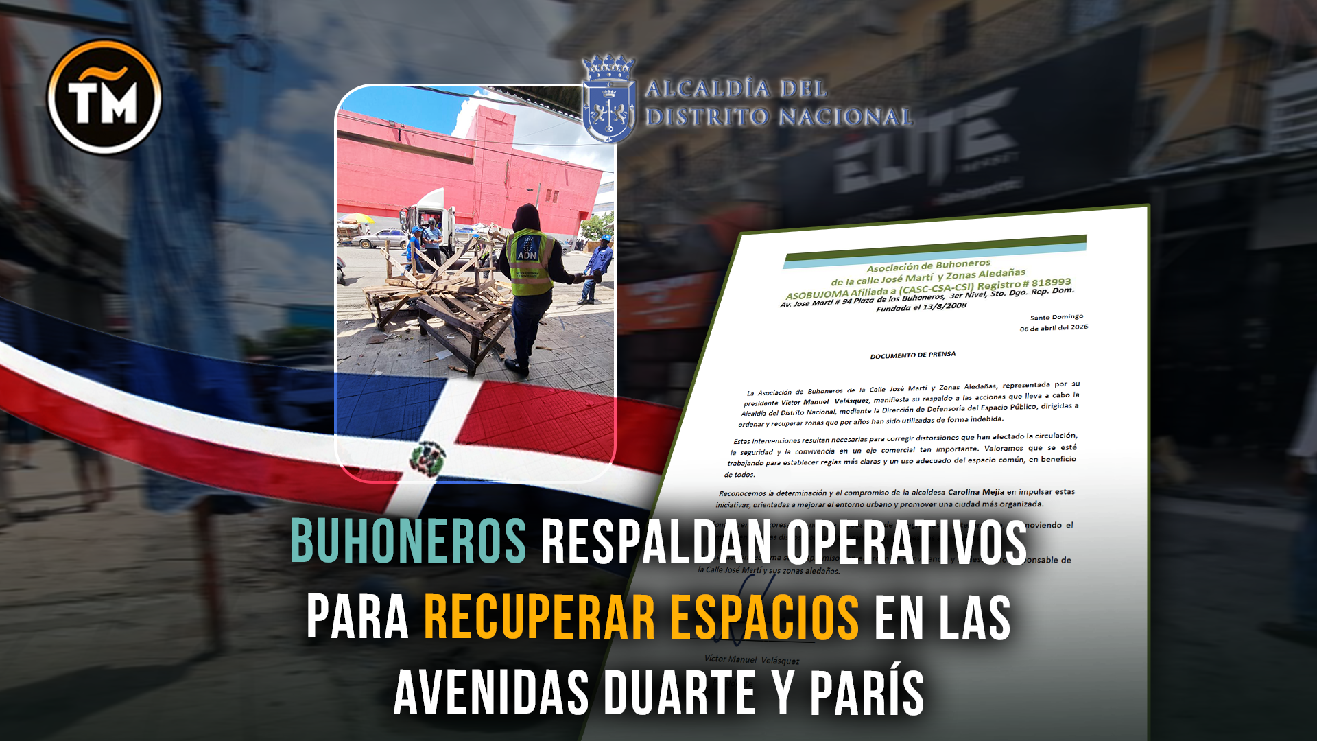 Por: Joenny Pérez.- La recuperación de espacios públicos en el Distrito Nacional recibió el respaldo de asociaciones de buhoneros que operan en las avenidas Duarte y París, en medio de las intervenciones impulsadas por la Alcaldía del Distrito Nacional para reorganizar estas zonas comerciales.