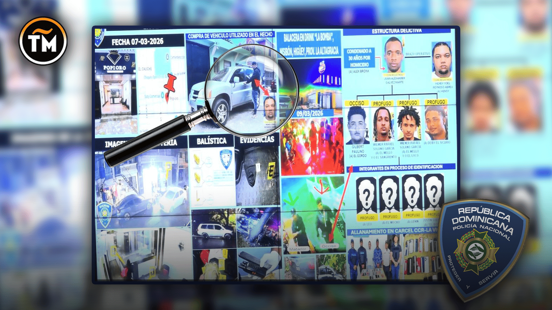 Entre los prófugos identificados se encuentran Wilmer Rafael Solano García, alias “El Mello Sangriento”; Wilner Rafael Solano García, alias “El Mello Loco”; Deiby, conocido como “Deiby el Sicario”; así como Lenin, “El Mocho”, “El Grande” o “El Cojo” y Justin Guerrero, alias “El Boricua”.