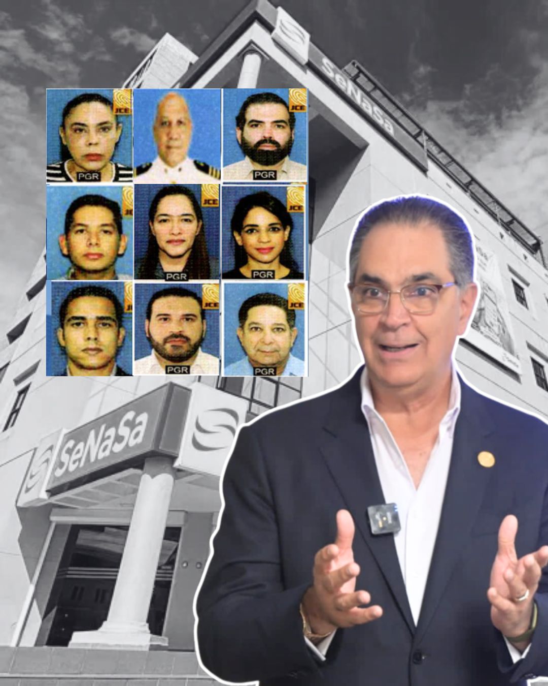 Los diez imputados por la supuesta corrupción administrativa: Santiago Marcelo F. Hazim Albainy, exdirector del SeNaSa; Rafael Luis Martínez Hazim, Gustavo Enrique Messina Cruz, Germán Rafael Robles Quiñones, Francisco Iván Minaya Pérez, Eduardo Read Estrella, Cinty Acosta Sención, Ramón Alan Speakler Mateo, Ada Ledesma Ubiera y Heidi Mariela Pineda Perdomo.