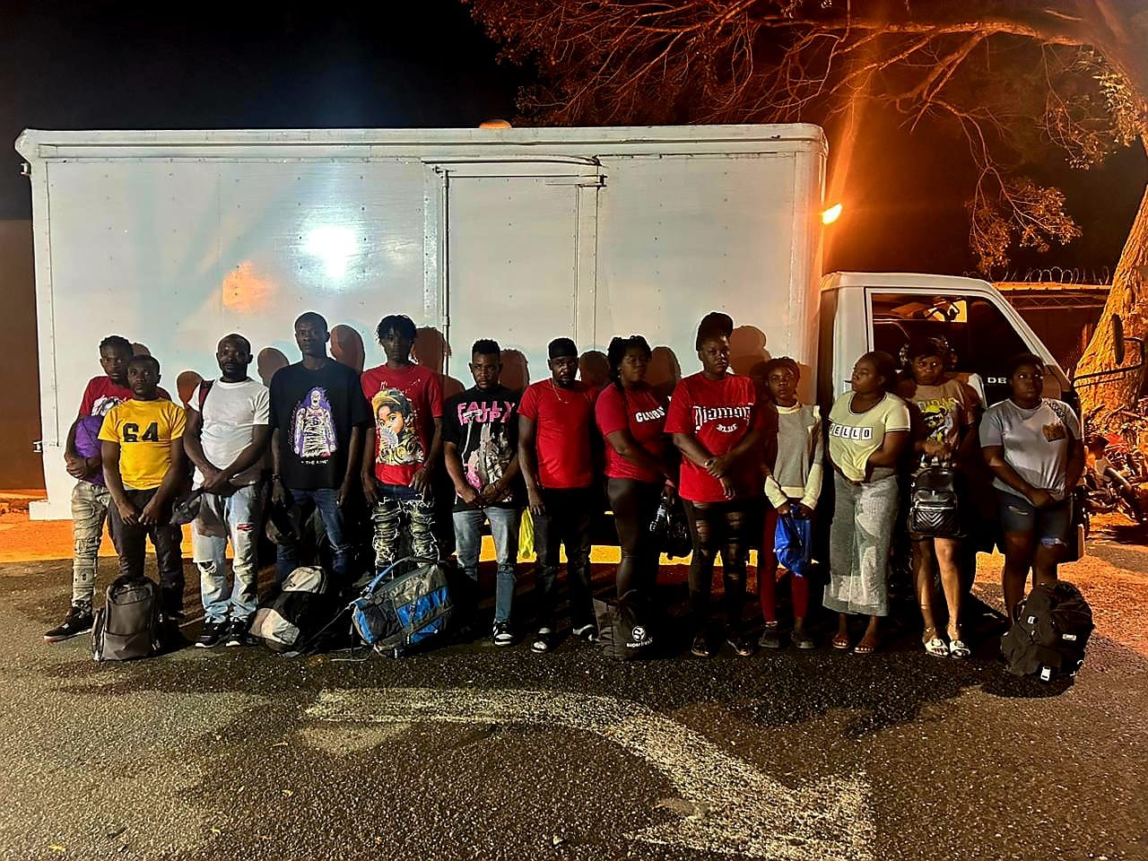 El vehículo era conducido por un hombre identificado como Alejo Gómez Lora, quien transportaba en el interior del camión a 13 haitianos con estatus migratorio irregular, distribuidos en seis mujeres y siete hombres.