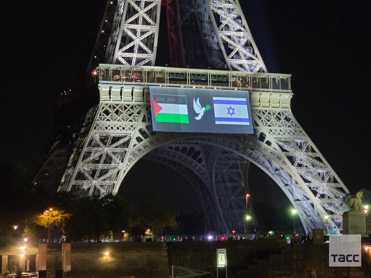La iluminación de la torre, uno de los monumentos más icónicos del mundo, pretende transmitir un mensaje de reconciliación y convivencia, exhibiendo juntas las banderas de ambos pueblos en un contexto de elevada tensión internacional.