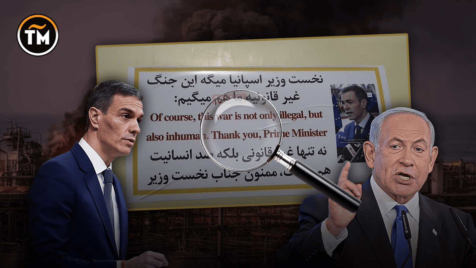 En ella se observa un mensaje en inglés y farsi que coincide con declaraciones del mandatario español en contra del conflicto armado.