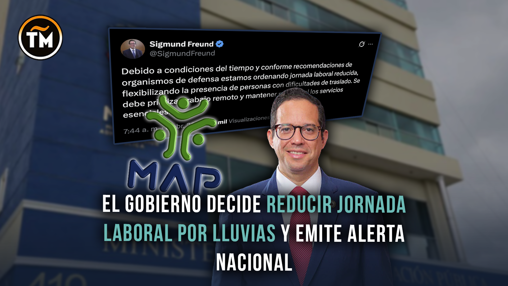 El ministro de Administración Pública, Sigmund Freund, anunció la reducción de la jornada laboral en el sector público debido a las lluvias.