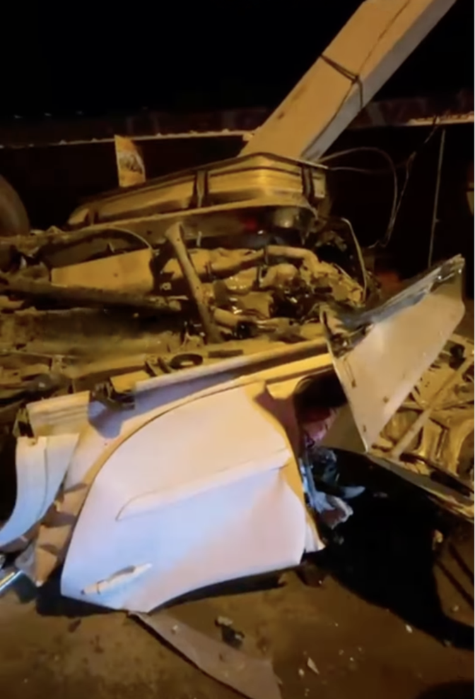 El siniestro involucró un vehículo Mitsubishi blanco que se desplazaba a alta velocidad y terminó chocando contra un poste del tendido eléctrico tras deslizarse.